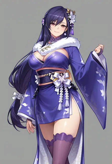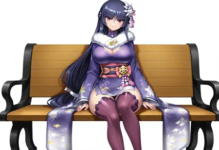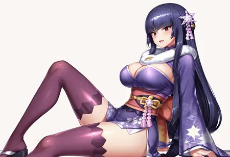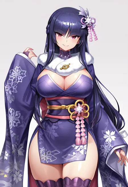 Snow Flower Rinko,japanese clothes,wide sleeves,sash,obi,kimono,tassel,hair ornament,floral print,purple thighhighs,