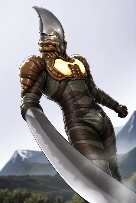 zang1ll, alien, tokusatsu, armor, helmet, kaijuu, glowing eyes, yellow eyes