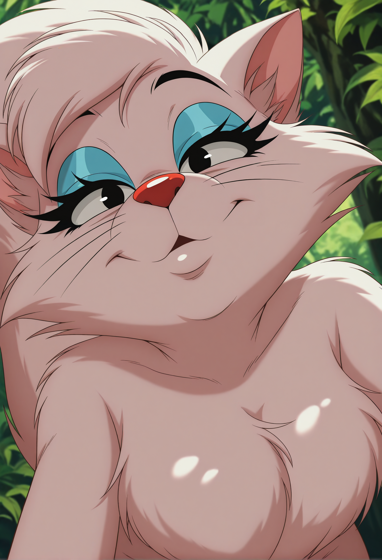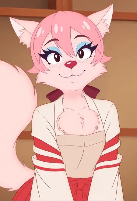 comic style,sketch, orretro cartoonto your prompt.There are some inconsistencies with the fur color. It is intended to be white-pink but can sometimes become overly pink. You can adjust this by increasing the weight of the color tags in your prompt.