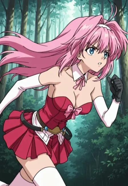 • 发带,可拆卸领子,粉红色胸衣,裸露肩膀,蝴蝶结,可拆卸袖子,手套,短裙,腰带,白色过膝袜,耳环,