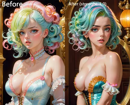 이 LoRA를 사용하면 어떤 SDXL 모델의 여성 얼굴도 개선할 수 있으며, 일부 경우 사실감을 향상시키고 때로는 NSFW 이미지를 생성하는 데 도움을 줍니다(이러한 효과는 예상치 못한 것입니다).