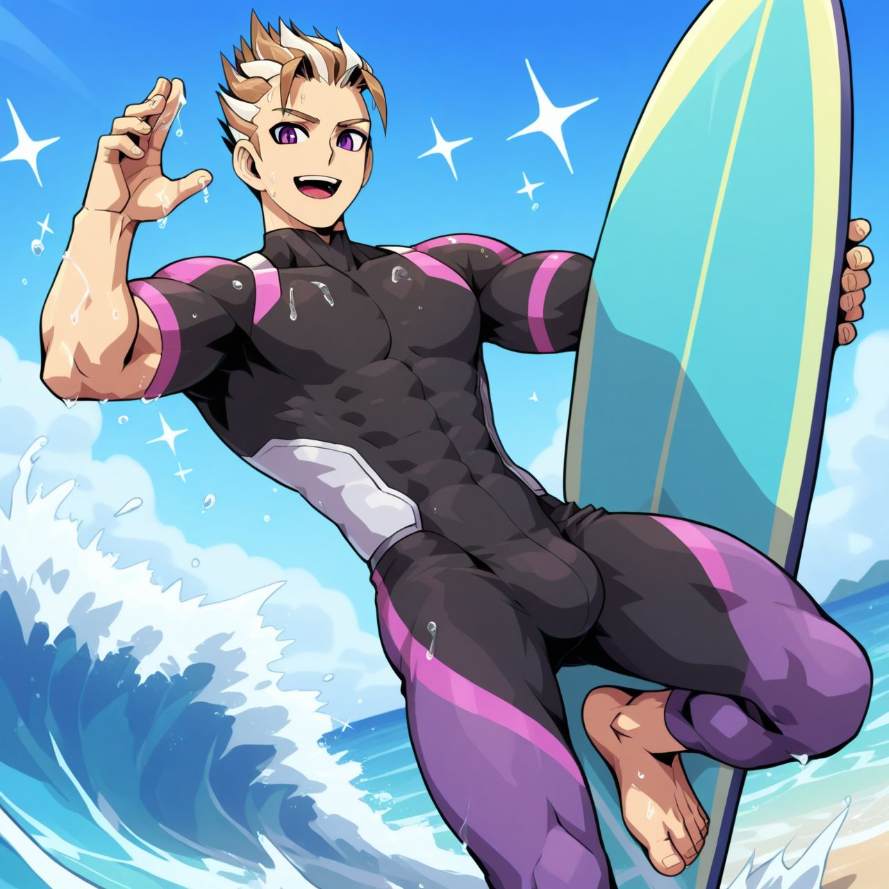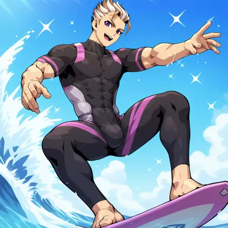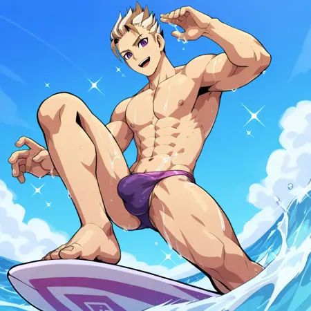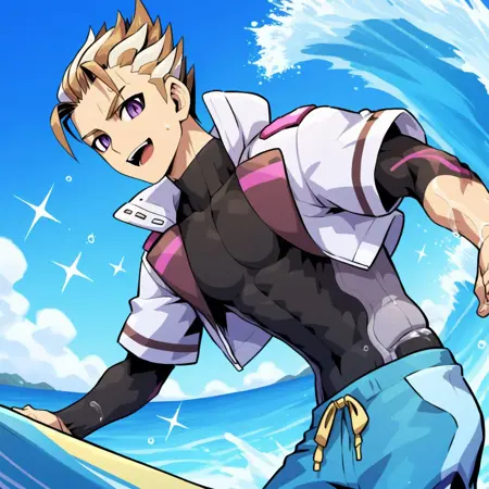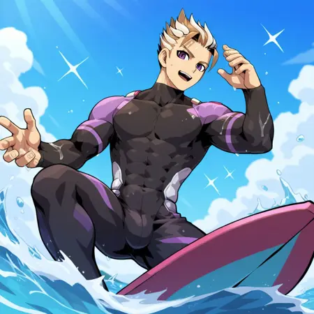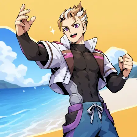 トリガー語: milas, 1boy, 茶色の髪, 男性焦点, 紫の目, ソロ