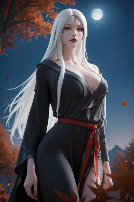 1girl,solo,long hair,white hair,forehead mark,facial mark,sash,blue eyes,black robe,red lips,green eyes,off shoulder