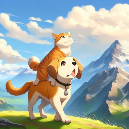 这是一个我很想测试的可爱概念:让大多数四足动物变成可爱小型动物的“小出租车”,特别是狗载着其他更小的动物。模型应能实现写实、动漫、卡通或3D风格。