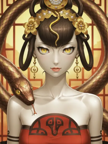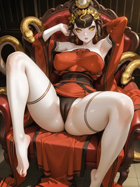 标签(角色-额外):红色指甲油,口红,苍白皮肤,脚趾甲油,蛇