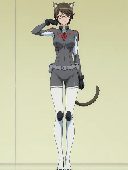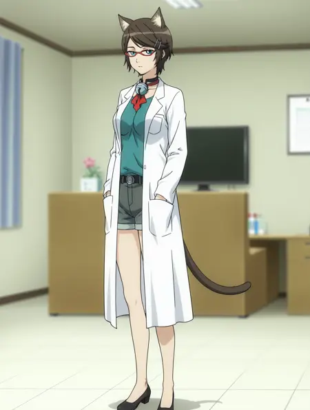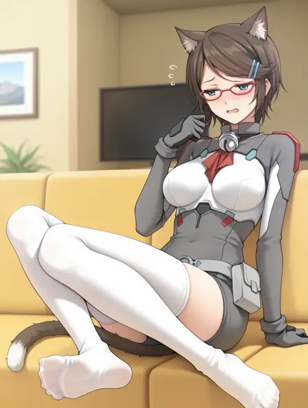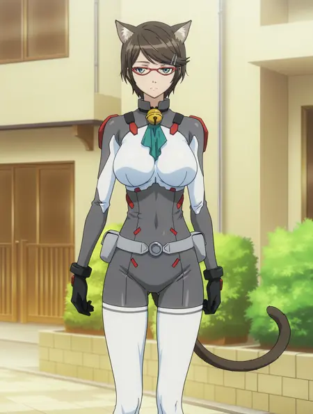 cpc-durel, 赤い眼鏡, 濃い茶色の髪, 短い髪, 刷り下げ front ヘア, 首輪の鈴, 猫のしっぽ, 猫の耳,