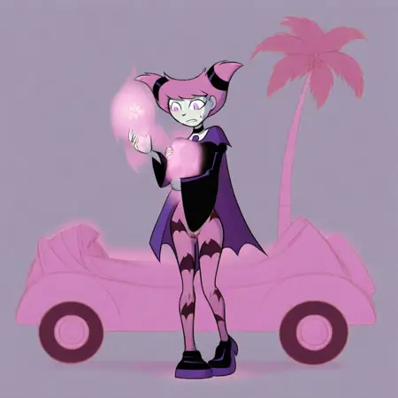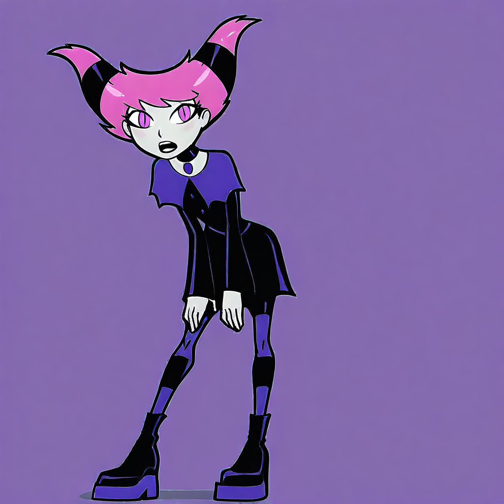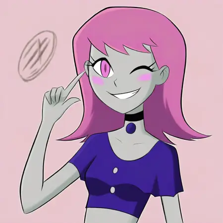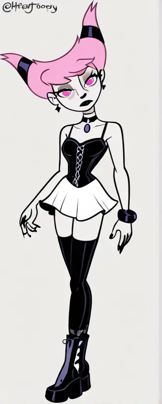 Jinx_TT, Jinx_Outfit, pink hair, pink eyes, hair horns,