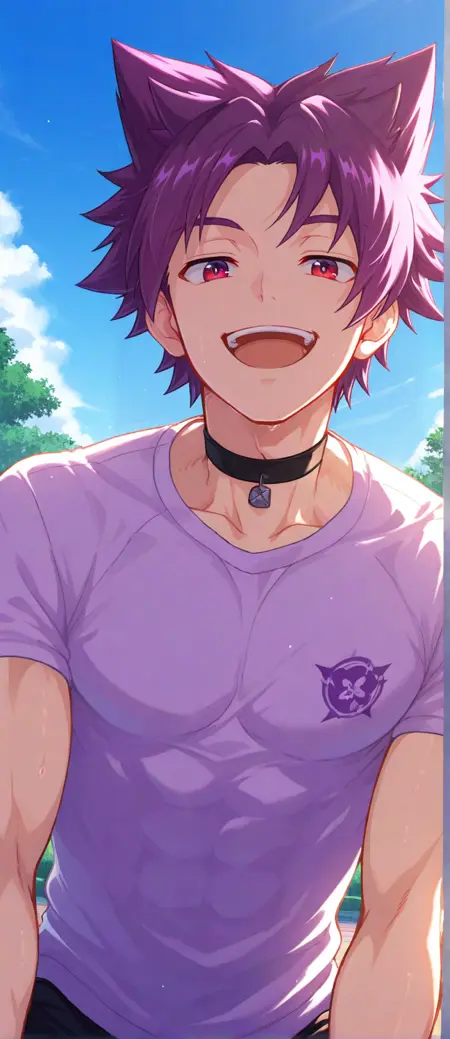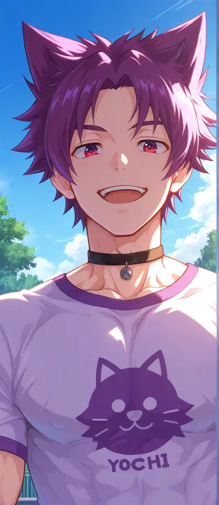 Trigger words: yoichi yukimura,purple hair,short hair,choker,red eyes,purple eyes,animal ears,parted bangs,