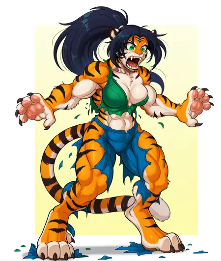 블랙-래트의 작품을 기반으로 한 스타일로, 털이 난 캐릭터와 선명한 근육을 가진 인간 캐릭터를 모두 생성할 수 있지만, 이 아티스트가 유명한 변형 장면을 생성하려면 여러 번 적절히 프롬프트를 입력해야 할 수 있습니다...