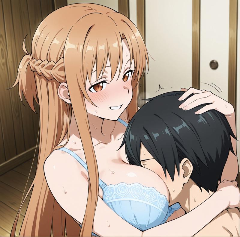 1girl, 1boy,hetero, bra, blush, naughty face,