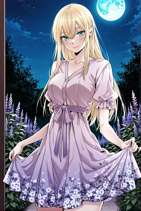 Yoodahee, 1girl, solo, turquoise eyes, blonde hair, long hair, uneven bangs, hair between eyes, long sidelocks, loose hair,