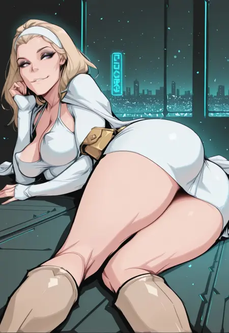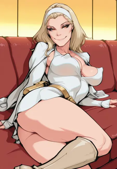 1girl, blonde hair, amber eyes, dark eyeshadow, white hairband