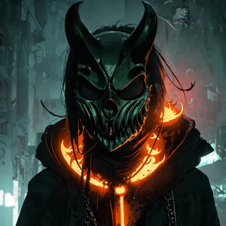 “黑暗之子”是我呕心沥血创造的成果。我用80张Slaughter to Prevail金属乐队面具的图片训练这个怪物,共15个周期、10次重复,总训练步数6000步。我只发布了其中第6个周期(2400步)的结果——根据我的测试,这是质量最高的版本。当然它并不完美,但天啊,它完美地完成了自己的使命。