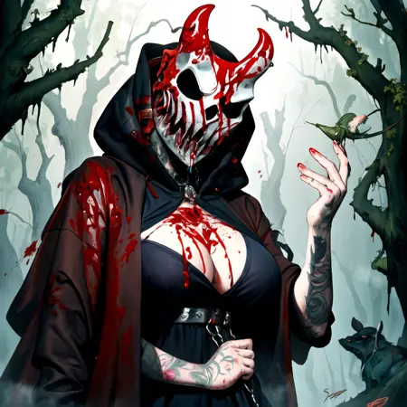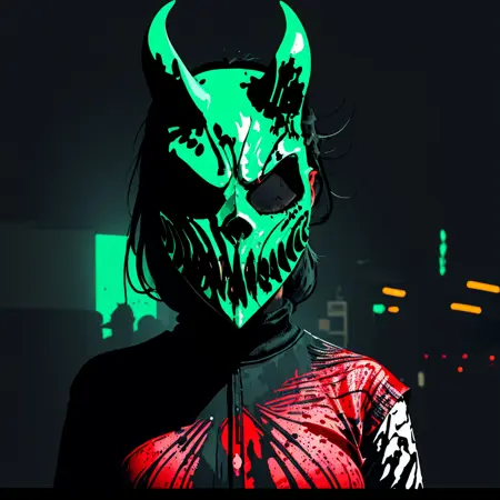 “黑暗之子”是我跪着创造出来的作品,我用80张Slaughter to Prevail金属乐队面具的图片训练这个小怪兽,共15个训练周期、10次重复,总训练步数6000步。我只发布了其中第6个周期(2400步)的结果——根据我的测试,这是质量最高的版本。我敢说它并不完美,但它绝对出色地完成了它的使命。