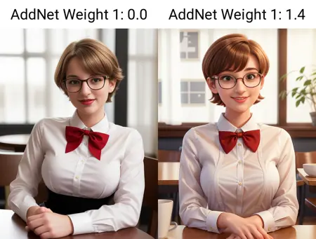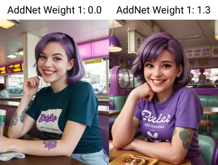 此LoRa没有触发词——只要添加它就会自动生效。有些检查点在标准权重1.0时效果很好,而另一些则需要稍微调高,比如调到1.4或1.5。你可能还会发现,使用较低权重时虽然效果不那么显著,但仍能得到一些有趣的结果。