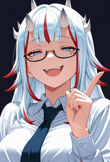Kuus3tsu, blue eyes, multicolored hair, white hair, red hair, long hair, horns, facial mark, tattoo
