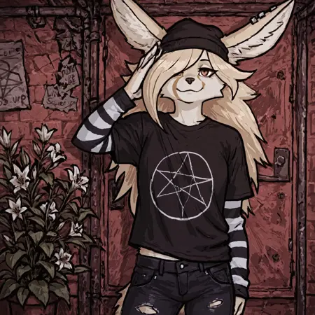 基础提示:Lily,耳廓狐,毛茸茸,单人,1个女孩,金发,金色毛发,长发,尾巴,长尾巴,耳廓狐尾巴,一只耳朵戴耳环