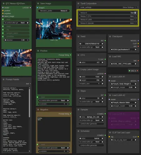 Nexus-8 LoRA: The final model before Tyrell Corporation went bankrupt. Oftentimes I stop here unless I really want to upscale something good. Adjust the strengths based on where you started with Nexus-6. Make sure you match what 6 was using. Supports three LoRAs, but I right-click bypass the third most of the time.