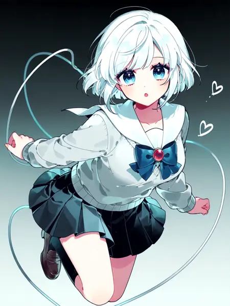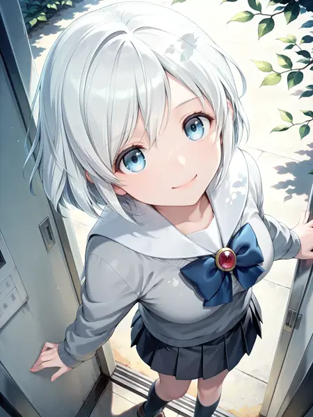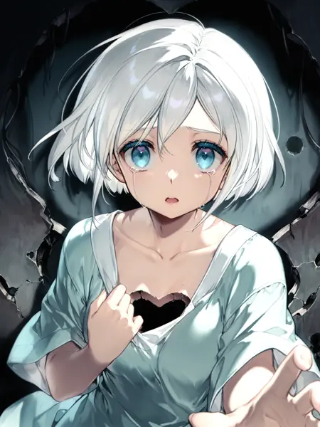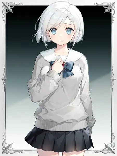 Ayame_CoPa, 1girl, white hair, short hair, blue eyes