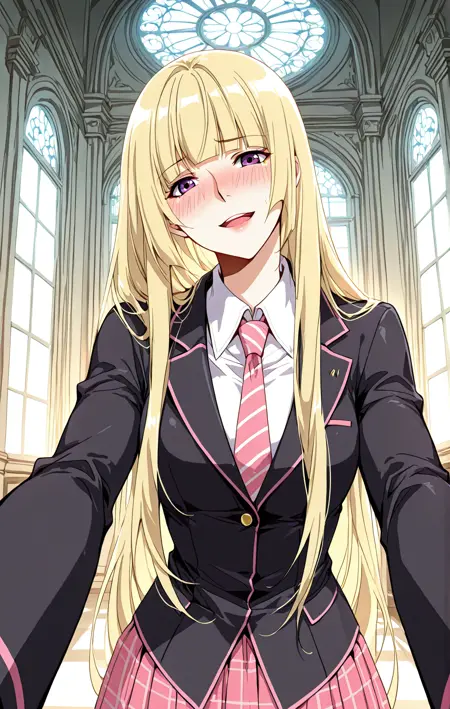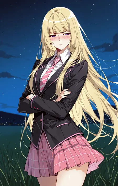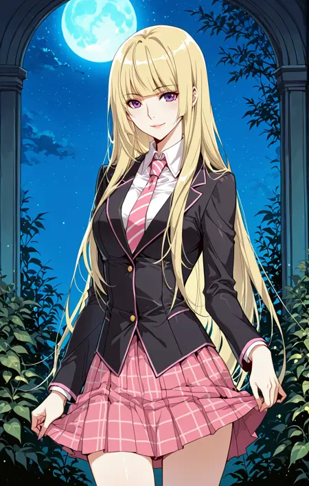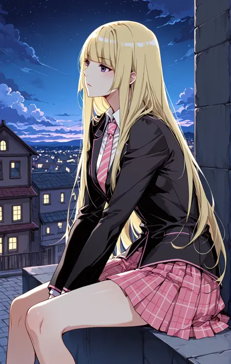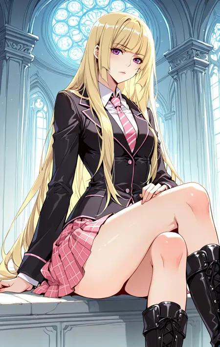 Ingyi,1个女孩,单独,紫色眼睛,金色头发,长发,齐刘海,头发垂至肩部,散开的头发,侧发,