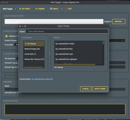 knx_tagger/themes/SKINNING_GUIDE.md— 完整的 QSS 样式参考knx_tagger/themes/WIDGET_LAYOUT_REFERENCE.md— 小部件位置模板参考knx_tagger/themes/SOFTWARE_SPECIFIC_GUIDES.md— Krita、GIMP、Photoshop 等软件的教程