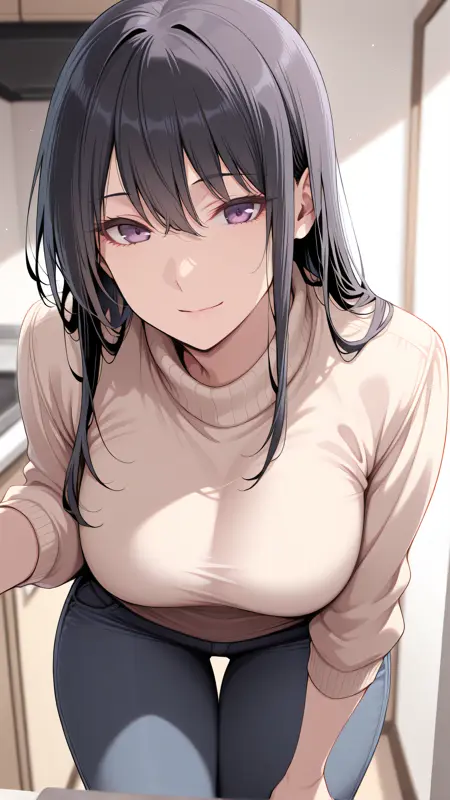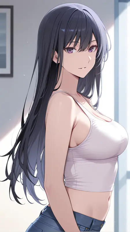 TAG:1girl, solo, long hair, bangs, hair between eyes, black hair, purple_eyes
