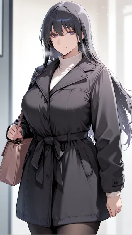コート、黒い冬コート、冬服、長袖、ジャケット、ロングダウンジャケット、黒いレギンス、
