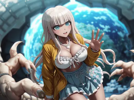 The dataset includes a selection from Danganronpa the Animation, Danganronpa 3, all of Angie's sprites and in-game CG from Danganronpa V3, and a tediously hand sorted selection of what I considered the best images from danbooru. Essentially a 2.0 of the SD 1.5, SDXL, Illustrious ,and Flux Angie Yonaga loras I've made.