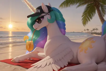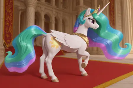 来自MLP粉丝圈的太阳最耀眼的马——塞拉斯蒂娅公主,以clopician风格设计,素材来源于e6的图片和动画。