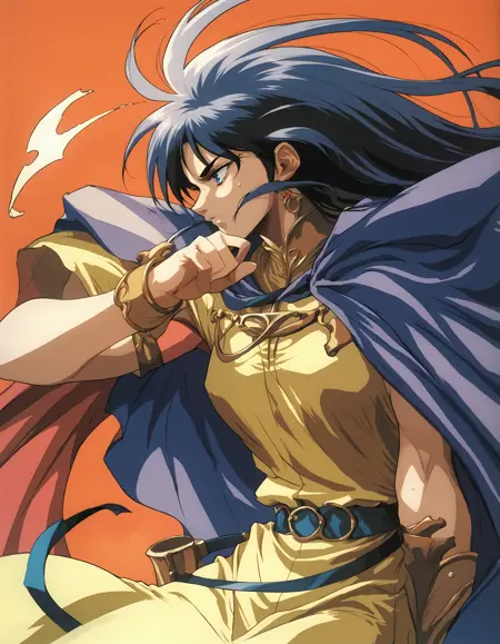 이 LoRA는 주로 《로도스 전기》 애니메이션과 일부 《카제 노 타이리쿠》(기억의 바람)를 기반으로 한 레트로 아트 스타일로, 모두 유키 노부테루가 그린 작품입니다. 이 스타일은 90년대 애니메이션 세계뿐만 아니라 RPG 비디오 게임에도 큰 영향을 미쳤습니다.