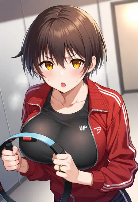 • default costume ( school uniform ) : white shirt , school uniform , short sleeves , ( red ) necktie , high-waist skirt , pleated skirt ;