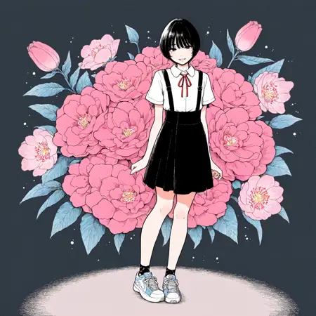 | 训练词汇 | watercolor_(medium),hatching (texture), fukiishi_yuiko\(chi_no_wadachi\),1girl,black hair,short hair,black eyes,mole under eye,已复制! collared_shirt,neck ribbon,red ribbon,short_sleeves, suspender_skirt,black skirt,已复制! ankle_socks,sneakers,已复制! overcoat,collared_shirt,vest,long_sleeves, black skirt,已复制! white tank top, black skirt,已复制! |