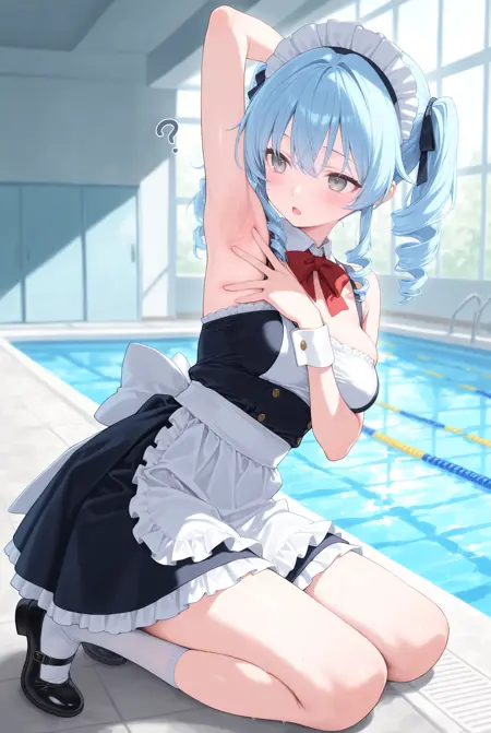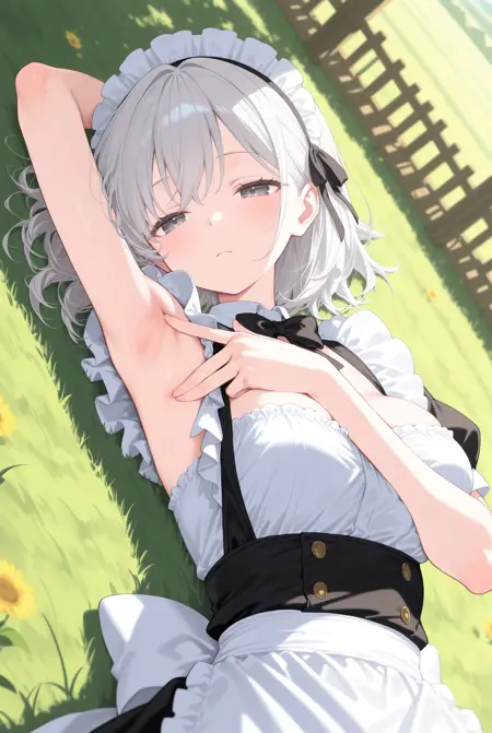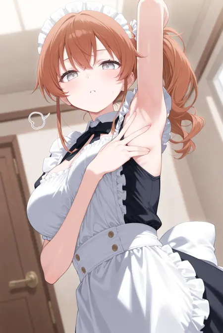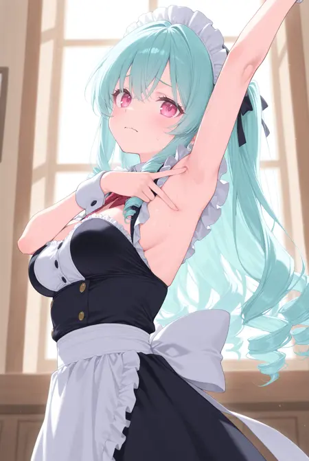 尽管该姿势原本就已包含在训练中,但由于“腋下阴部”这一概念广为流传,一些画师开始以类似女性生殖器的形状和颜色来描绘腋下区域。我认为Illustrious风格对此类描绘进行了强烈的学习,因此我将其调整为更光滑的视觉效果。此外,原本应是用手指张开腋下的姿势,但生成图像常只呈现腋下前方比出“V”字手势的样子,于是我进行了修正,使手指看起来更深入并真正撑开腋下。
