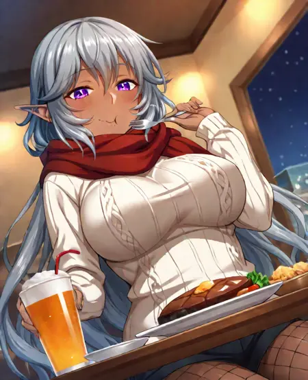 默认服装:(长围巾),珠宝,暴露衣物,乳头,比基尼,黑色肘套,手镯,无指手套,阴部纹身,(束缚装),丝带,(黑色)过膝袜;