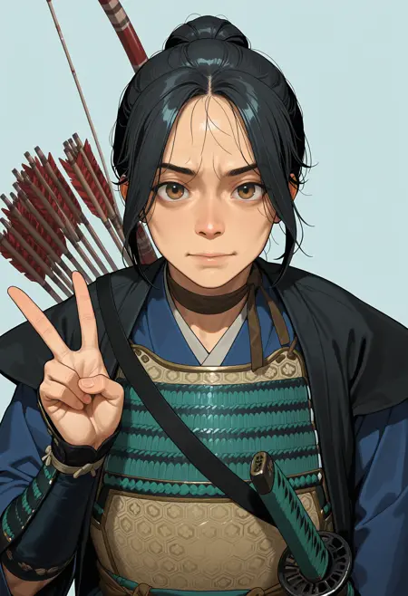 mskilf, 검은 머리, 갈색 눈, 상반신, 갑옷, 카타나, 화살(투사체)