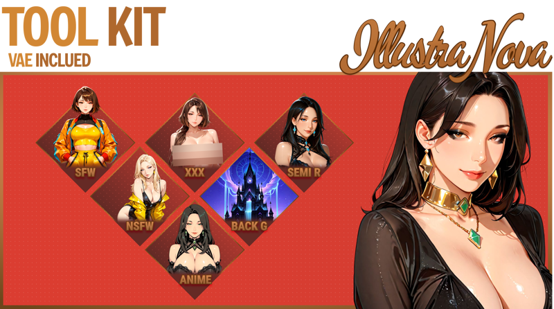 IllustraNovaは、アニメ風のスタイルと半実写的な深みを融合させ、表現力と視覚的な洗練を求めるクリエイター向けに設計されています。鮮やかなキャラクターデザインと繊細な描画のバランスを重視し、ムードや構図の変化にもスムーズに対応します。