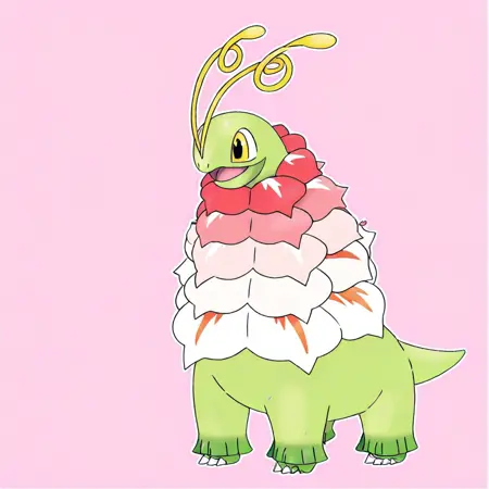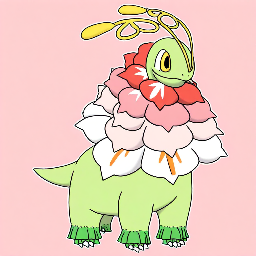 for v2 is more correct at 0.8 and for the flowers it does not really give the 4 flowers of the mega evolution