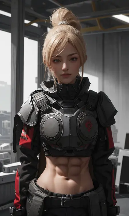 체인소 베이onet이 포함되어 있지만, 실제로 작동하는 빈도는 매우 불안정하며 대부분 실패한다. 이는 1.5 버전에서 무기가 왜곡되기 때문이지만, inpainting을 통해 항상 개선할 수 있다. 아머의 색상, 장식을 매우 다양하게 변경하고 창의적으로 조정할 수 있다. 헬멧을 추가하면 Carmine 헬멧이 제공된다.
