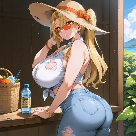 1girl, Maria, 金发, 绿眼, 巨乳, 胸部有痣