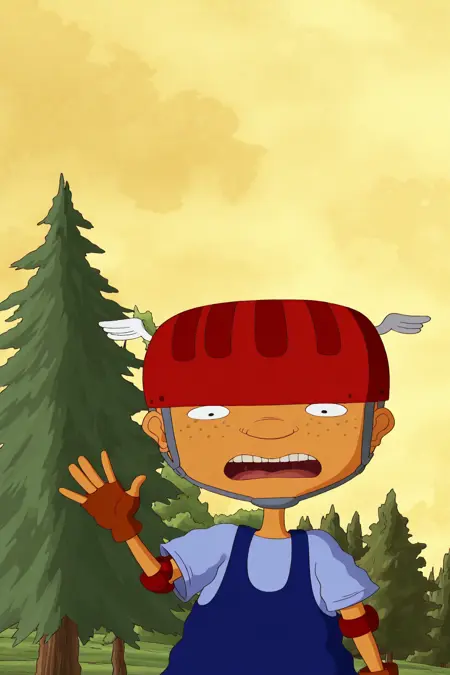 -two-tone baseball cap, backwards hat, blue tank top, blue shirt, green shorts, white sneakers, extra: red helmet, winged helmet,