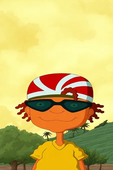 -glasses, yellow shirt, brown shorts, white sneakers, extra: two-tone helmet