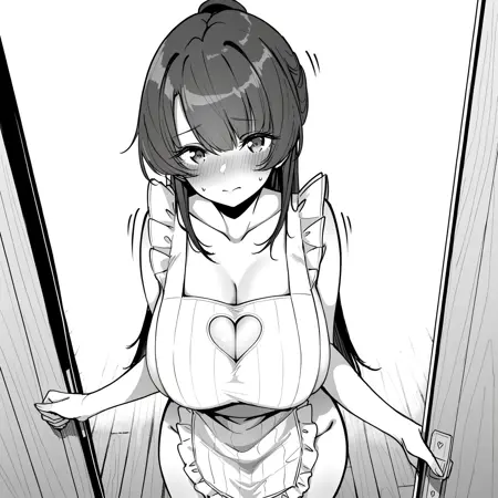 outfit 2: lisaap, naked apron, frilled apron, heart cutout, apron, clothing cutout, collarbone, frills, sideboob