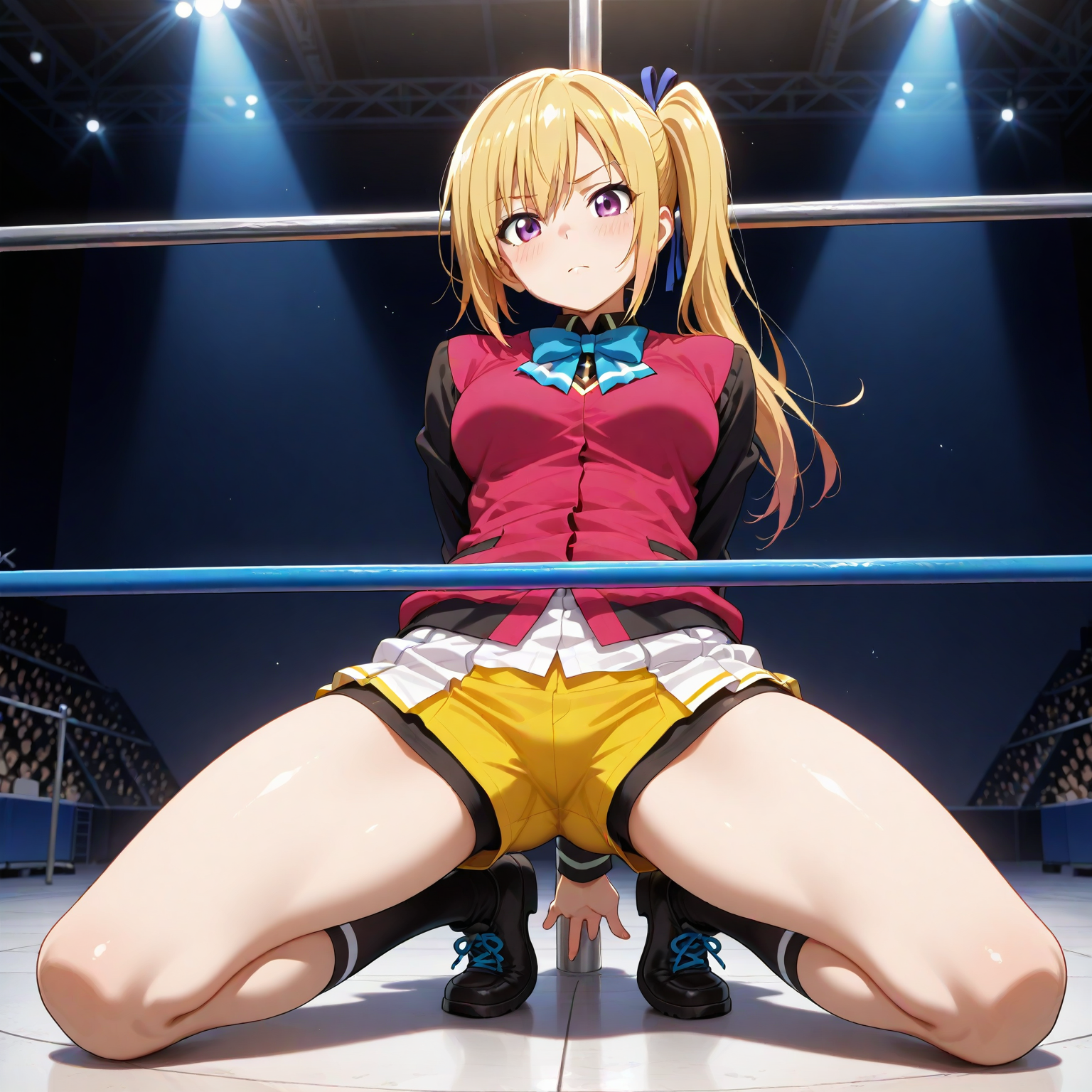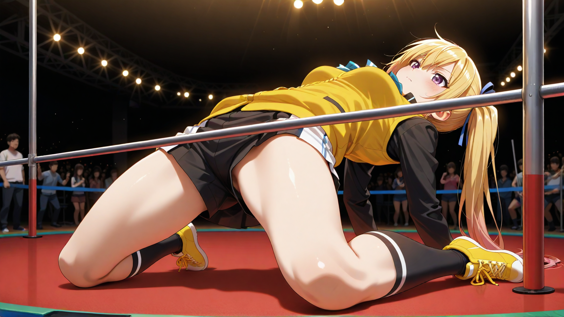 limbo dance,backbend,leaning back,dynamic pose,spread legs,pole,kneeling,