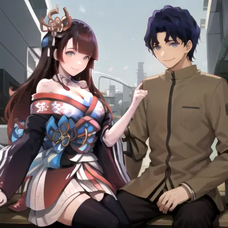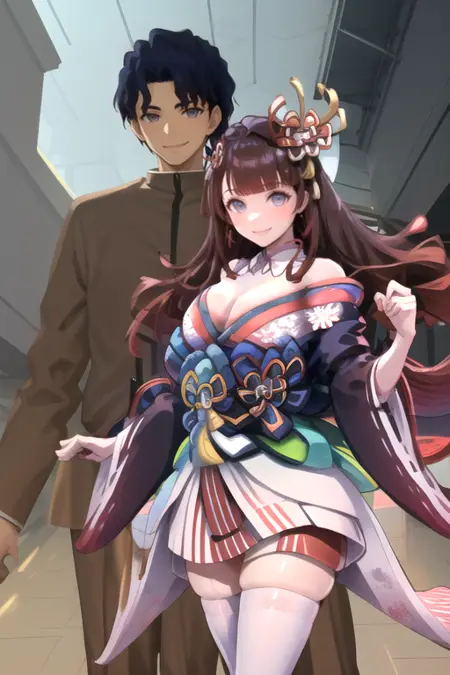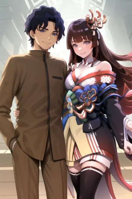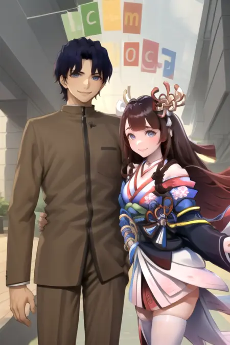 ShinjiNijishit, a man and a woman, hetero, standing, smile, cowboy shot