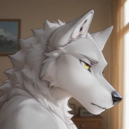 Haruki_K, wolf, anthro, white fur, tail, yellow eyes, 1boy