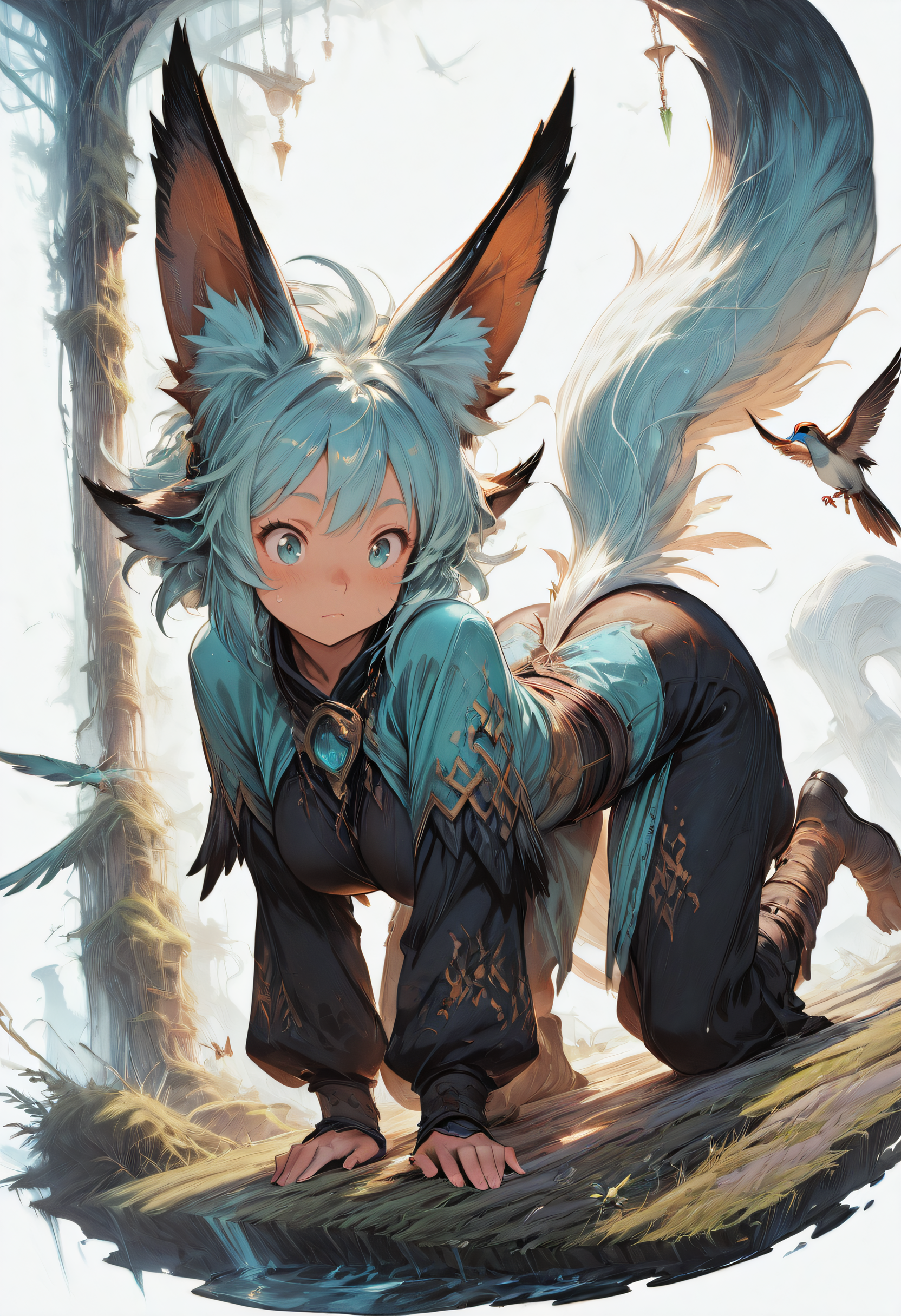 이 LoRA는 더 크고 디테일한 동물 귀를 생성하며, 판타지 회화 스타일의 느낌도 더합니다!