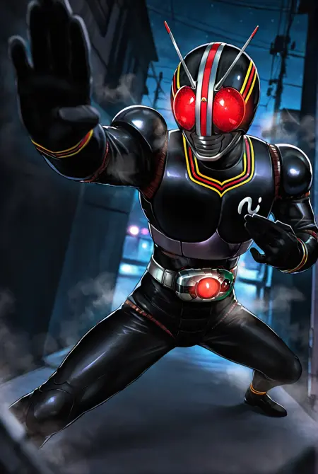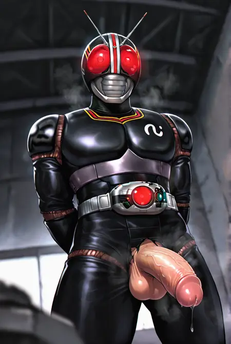 kamen rider blk, ヘルメット, アンテナ, 赤い目, アーマー, ボディスーツ, ブラックボディスーツ, ベルト, ブーツ