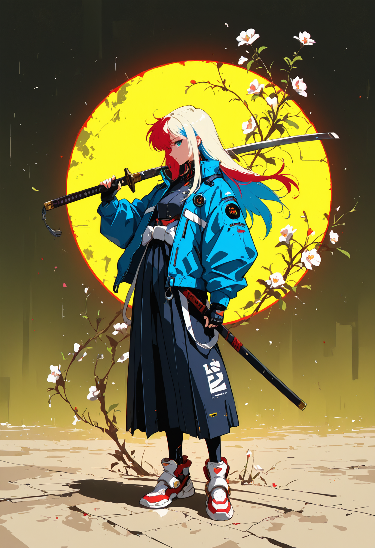 미래 기술 사무라이 사이버펑크 (SDXL)