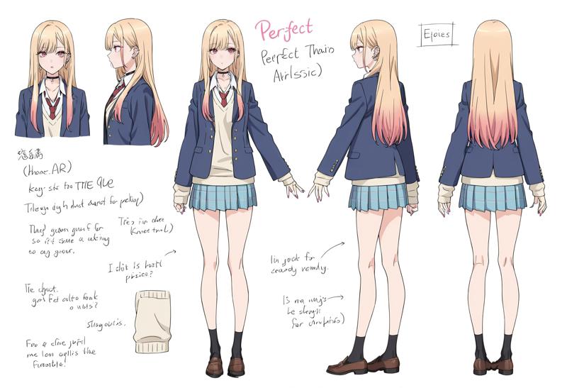 의상 3: 흘린 앞머리, 빨간 머리, 색상 끝, 간유, 치마, 넥타이, 초커, 학교 유니폼, 재킷, 셔츠, 신발, 양말, 검은 초커, 주름치마, 흰 셔츠, 로퍼, 파란 치마, 검은 양말, 갈색 신발, 미니 치마, 빨간 넥타이, 긴 소매, 칼라 셔츠, 블레이저, 페어싱, 귀 개구멍, 보석, 열린 옷, 귀걸이, 파란 재킷, 열린 재킷, 손목을 넘는 소매, 체크 치마, 체크, 바벨 페어싱, 스웨터, 곧은 머리, 드레스 셔츠, 왕관 칼라, 느슨한 넥타이, 다리 노출, 레이스 초커, 가슴, 열린 칼라, 카디건, 조끼