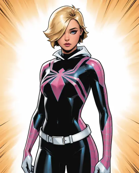 格温·史黛西,又称蜘蛛格温,或漫威漫画中的幽灵蜘蛛。这是她当前《全新幽灵蜘蛛》系列中的最新服装。虽然不如原版出色,但我认为这是一个相当不错的设计。